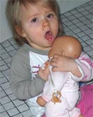 Als wir beide heute in der Küche waren, hast Du Püppi (siehe auch den 5. Mai) ganz doll lieb geknuddelt und sie gefüttert.Siehe Link