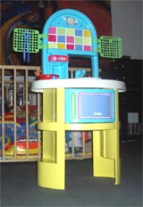 ![]() Das ist Dein Handy. Das hast Du ja schon lange. Die Tasten funktionieren so, dass wenn man draufdrückt, Ernie von der Sesamstrasse die jeweilge Zahl sagt. Außerdem kann das Telefon noch: "Hallo, hier ist Ernie". Und "Tschühüss...", wenn es dann einige Minuten nicht mehr benutzt wird. Mami hat gesagt, dass Du heute ganz oft "eins" und "acht" gesagt hast, als Du mit dem Handy spieltest. Als ich Abends nach Hause kam, hast Du mir Dein neues Kunststück allerdings vorenthalten... :-)