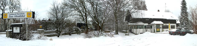 Heute haben wir beide meinen Papa, also Deinen Opa, besucht. Mami wäre gerne mitgekommen, aber sie hatte einen relativ wichtigen Arzttermin. Opa Alfred hat sich sowas von riesig gefreut, Dich wieder zu sehen! Er konnte kaum glauben, wie gross Du schon geworden bist! Dass Du ein Mädchen bist, freut ihn besonders, hat er selbst doch nur drei Söhne... Er hat ein sehr leckeres Schweinefilet für uns gemacht. Das hätte Anja sicher auch gemundet! Hier unten siehst Du Opas schöne Gaststätte, die er aber wahrscheinlich dieses Jahr noch verkaufen wird - leider.