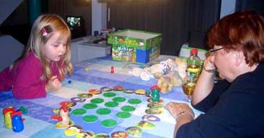 Zu dritt haben wir heute abend "Zicke Zacke Hühnerkacke" und "Kicki Ricky" gespielt.Siehe Link
