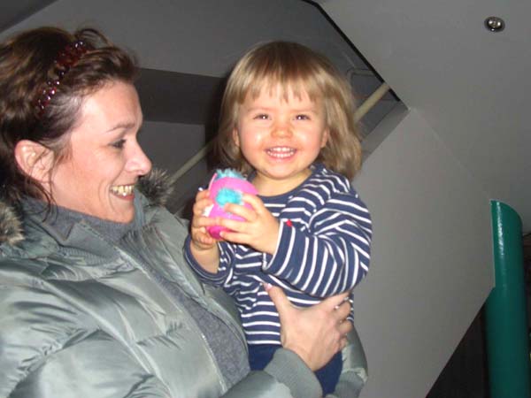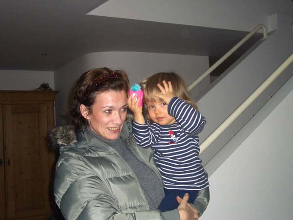 hast Du heute gelernt: Tschüss. Es war zwar noch nicht ganz deutlich, aber man konnte es verstehen. Ich hatte es Dir schon öfters vorgesprochen, wenn Opi Theo wegging und dabei auch winke, winke mit Deiner Hand gemacht. Und heute hast Du endlich reagiert. Nämlich als Britta wieder ging. Das ist die Tochter von meiner Freundin Heidrun. Die beiden und auch "Tante" Uschi waren heute nachmittag zu Besuch da. Mit Britta hast Du Dich gleich angefreundet. Sie hat mit Dir gespielt, den "Wauwau" gemacht und gemalt. Und Dir ein Duplo geschenkt, welches Du dann auch gleich aufgegessen hast.