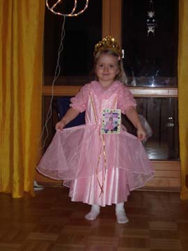 | SO, 08.01.2006: von Omi Silvana Süß, siehst Du aus! Aber Du bist auch ohne diese Verkleidung meine kleine Prinzessin :-) Und ganz süß war es, als Du heute am Telefon zu mir sagtest: "Ich komm bald wieder"! Ich vermisse Dich sehr, Küßchen, Omi