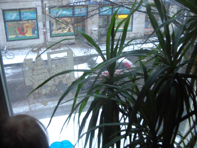 Das ist (von ein paar Flocken am 23.10. mal abgesehen) der erste Schnee diesen Winter. Da hast Du schon erst mal große Augen gemacht! Was man auf dem Foto nicht sieht, sind die Schneeflocken, die da gerade reichlich runtergehen.