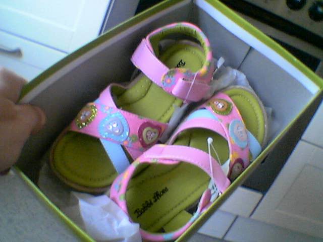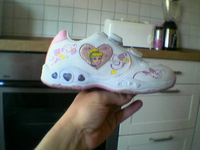 | SA, 28.04.2007: Von Papa In Stern-TV haben wir jetzt eine "Anleitung für ein Kinderschuhmessgerät" bekommen. Und das geht so: Man malt den Fuß auf eine Schablone, nimmt den größten Abstand zwischen Fußballen und Zehen und tut nochmal 12 mm drauf. Das schneidet man aus, verstärkt es etwas und fertig. Das Teil schiebt man dann in den in Frage kommenden Schuh, und das muss dann passen. So ein Teil hab´ ich also gestern gebastelt und dann Deine Schuhe getestet und festgestellt, dass Dir bis auf die roten Sandalen keine Schuhe mehr passen. Also ab ins Schuhgeschäft und neue Schuhe gekauft! :-) ![]() ![]() Die hier sind doch hübsch, praktisch (eine große Schnalle mit Klettverschluss) und pflegeleicht. Größe: 29 ![]() Für den Sommer, in dem wir (jetzt im April) schon mitten drin sind. Süße Sandalen, rosa und mit viel Glitzer! :-) Größe: 29 ![]() Auf die hier fährst Du total ab! Die sind aber auch wirklich süß! Größe: 30 - sind allerdings noch etwas groß! ![]() Die Herzchen da unten blinken, wenn man fester auftritt. Das ist natürlich coool! :-) ![]() Nach dem Schuhkauf sind wir beide noch ins Kaufland einkaufen. Anschließend sind wir drei nach Dorfen gefahren. ![]() Als Du in Viernheim warst, sind Mama und ich mit dem Motorrad gefahren und hier gelandet. Weil es uns ganz gut da gefallen hatte, sind wir heute mit Dir hierhin. ![]() OK, hier gibt´s nicht so viel, aber ist trotzdem ganz hübsch hier... ![]() Oben: TicTac für die Maus. ![]() ![]() ![]() |