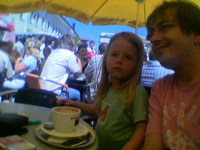 Wir sind an unseren Marktplatz, Eis essen und Rad fahren.