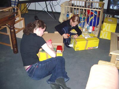 Oben: Erstmal sechs Kartons ausgepackt...