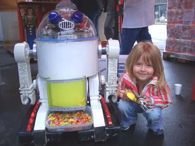 Dieser süße Roboter hatte es Dir angetan. Er hat Dich angesprochen und Du durftest Dir aus seinem Bauchladen ein paar Bonbons nehmen. Dafür musstest Du ihm dann ein Küsschen geben.