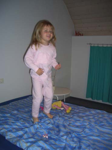 Vor dem Schlafen durftest Du wieder auf dem Bett rumhopsen. Das macht dir immer riesig Spaß.