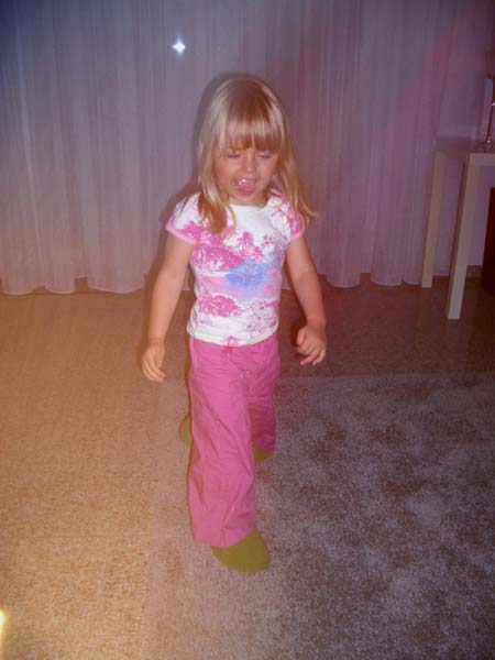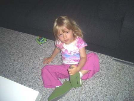 Abends warst du richtig gut drauf und hast viel Blödsinn im Kopf gehabt. So hast du meine Hausschuhe angezogen und gesagt: "meine Hausschuhe" und dich dabei halbtot gelacht!