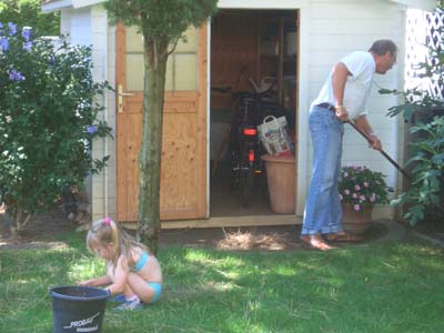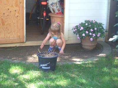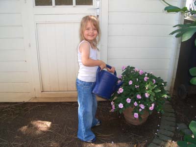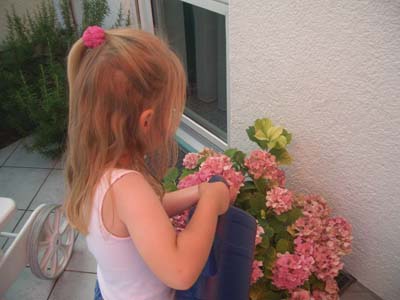 Wieder zu Hause haben wir Gartenarbeit gemacht. Blumengießen macht Dir Spaß!