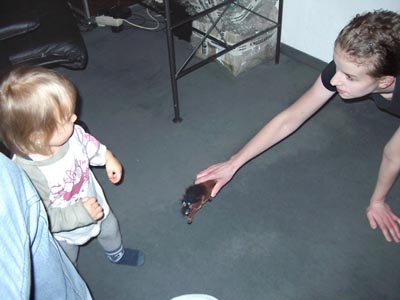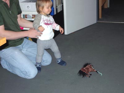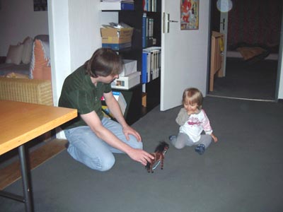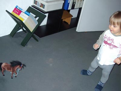 Du! Du hast Angst vorm kleinen Pferd. Vorm kleinen Pferd aus Lisa´s Playmo-World. Dieses hast Du nämlich heute entdeckt und Dich dabei so sehr erschreckt, dass Du laut aufgeschrien hast. Anja und ich haben dann versucht, Dir das Spielzeug etwas näher zu bringen, aber wirklich anfassen wolltest Du es lieber doch nicht.
