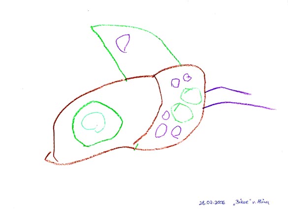 Ich hab´ gaaanz große Augen gemacht, als ich heute nach Hause kam und Mama mir zeigte, was Du heute schönes mit ihr gemalt hast. Wobei man betonen muss, dass Du die Bilder (siehe Link) ganz alleine gemalt hast! Du hast Mama, Dich selbst, mich - und eine Biene gemalt! Super, wirklich!!!