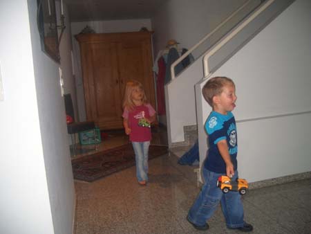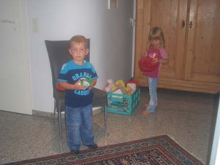 | FR, 26.08.2005: von Omi Silvana Die vergangene Nacht hast du wunderbar durchgeschlafen. Heute morgen - wir hatten gerade gefrühstückt - besuchte uns May mit ihrem Enkelkind Niklas, 2 1/2 Jahre alt. Zunächst bewunderte er deinen "Schnappi", das Krokodil