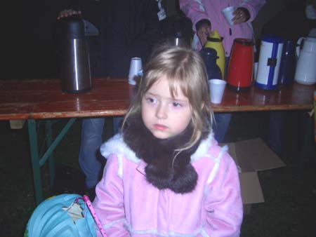 | MO, 13.11.2006: Von Andy "...Auch wenn es nicht sehr kalt war, gab es danach für die Erwachsenen noch Glühwein und für Kinder den "Kinderglühwein" aus Kirschsaft. Den wolltest Du aber dann doch nicht trinken, weil er angeblich (!) zu heiß war." Ja, das ist so ein Phänomen bei unserer Maus - dass sie warme Getränke jeglicher Art ablehnt. Alina mag sie nicht. Ich habe sie noch nie freiwillig einen Tee trinken sehen, und in sofern wundert mich das mit dem Kinderglühwein gar nicht... ;-))