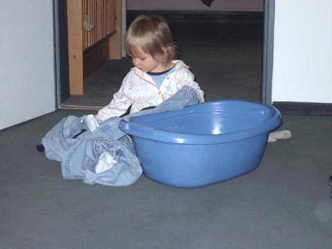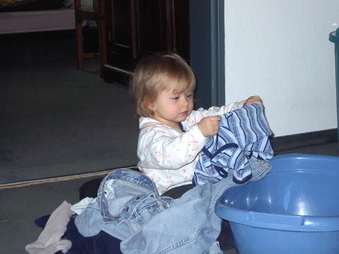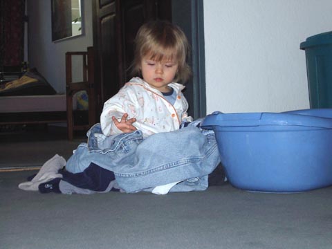 ...vier süße Fotos. Drei bei der Inspektion unseres Wäschekorbes und eines in warmer Herbstmontur.