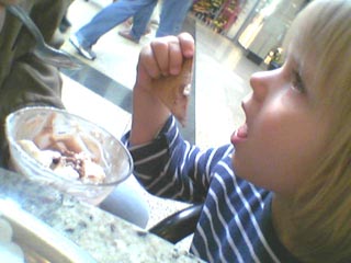 Heute, Dienstag: denn das Wetter ist nicht toll. Außerdem geht Mama da eh´ gerne hin. ![]() ![]() Theo und Du - Ihr versteht Euch gut! ![]() ![]() Wir gehen zu Engelhorn. Schöner Laden mit tollen Sachen. ![]() ![]() ![]() ![]() ![]() ![]() ![]() Heute kriegst Du einen EIGENEN Bananen-Shake. Gestern hast Du MEINEN nämlich fast alleine ausgetrunken! ;-) ![]() Und jetzt kommt´s: In einem einzigen Zug bohrst Du den ganzen 0,3l Shake ab!!! ![]() Und weinst, als auf einmal dieses gemeine Glas einfach LEER ist!!! ![]() Doch Theo weiß Dich zu beruhigen. ![]() ![]() ![]() Unsere Heimfahrt ist ok, allerdings läuft mir ein Fuchs vor´s Auto. Der Arme. Er muss mit dem Leben bezahlen, wir müssen anderthalb Stunden Zeitverzögerung in Kauf nehmen (Polizei etc.). |