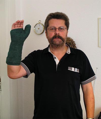 ...von uns Vieren aus der Weisswurstmetropole. Wir wünschen Dir, dass Dein Arm bald wieder heile wird und Du den nervigen Gips endlich in die Tonne kloppen kannst.