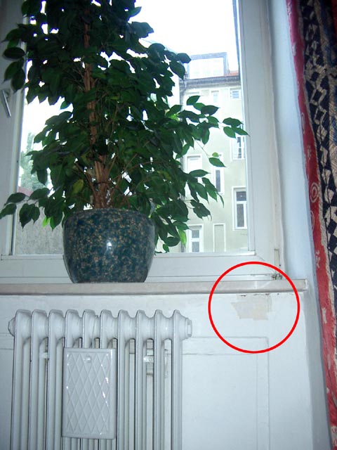So. Mehr fällt mir jetzt nicht ein, muss auch Schluß machen, denn ich muß morgen früh raus (schon um 6.00 Uhr) und jetzt ist es schon nach zwei. Achso, nochmal zu diesem "Ding" da (das Foto oben). Das ist abbe Farbe unterm Schlafzimmer-Fenster.