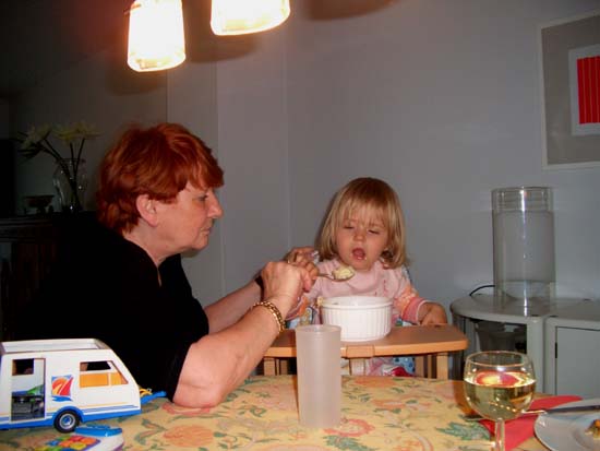 Zum Abendessen gab es Frikadellen, Kartoffelbrei und Erbsen-/Möhrengemüse. Meine Freundin Uschi tat Dir das Essen auf den Löffel...