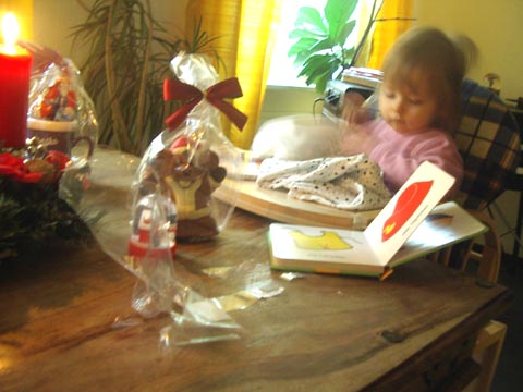 | SO, 07.12.2003: von Papa Ja liebe Anja, wir haben Dein Päckchen gekriegt und auch schön gebührend beschert, wie die Bilder sicher zeigen... ;-) Vielen lieben Dank dafür.