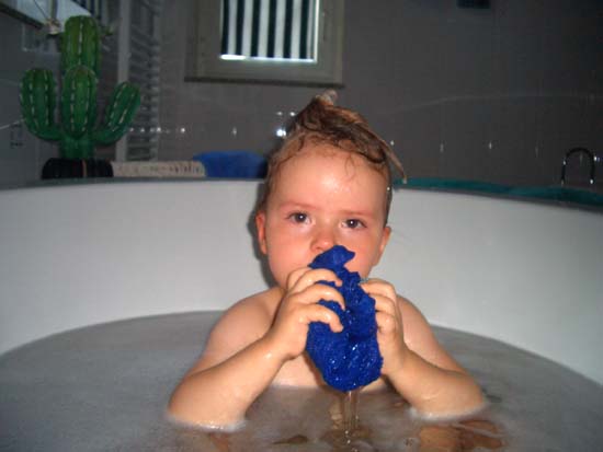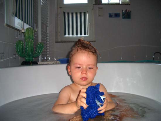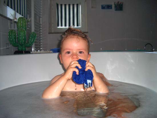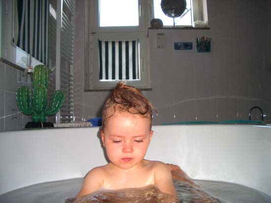 | DI, 21.09.2004: Sonntag, 19.09.2004 Heute war ein ziemlich langweiliger Tag. Wegen des schlechten Wetters sind wir den ganzen Tag zu Hause geblieben. Darum gibt es nur ein paar Fotos in der Badewanne. Du warst heute auch nicht soo gut drauf, ich denke, das sieht man auch!