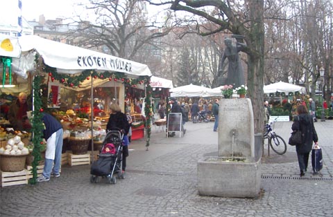Und auf den Viktualienmarkt, wo wir für unser Abendessen einkaufen.